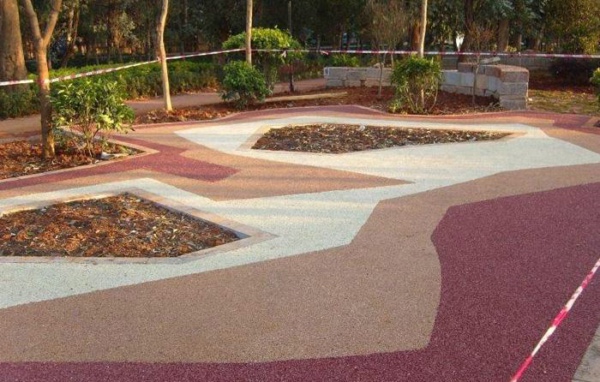 制作透水彩色路面,應通過材料來保證地面的透水性。