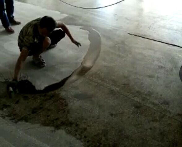 2、打磨拉毛;基面是瓷磚的話打磨處理顯得尤為重要,因為瓷磚本身材質相對致密,不容易滲透和粘接,所以一定要用打磨機將瓷磚打磨幾乎全部打磨粗糙,以增加環氧地坪漆與地面的粘接效果。
