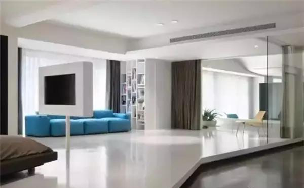 在客廳,一張素色的自流坪地面,搭配素面朝天的白墻、簡(jiǎn)簡(jiǎn)單單的一張軟沙發(fā),隨便鋪一張地毯,剛?cè)岵?jì)之美盡顯。